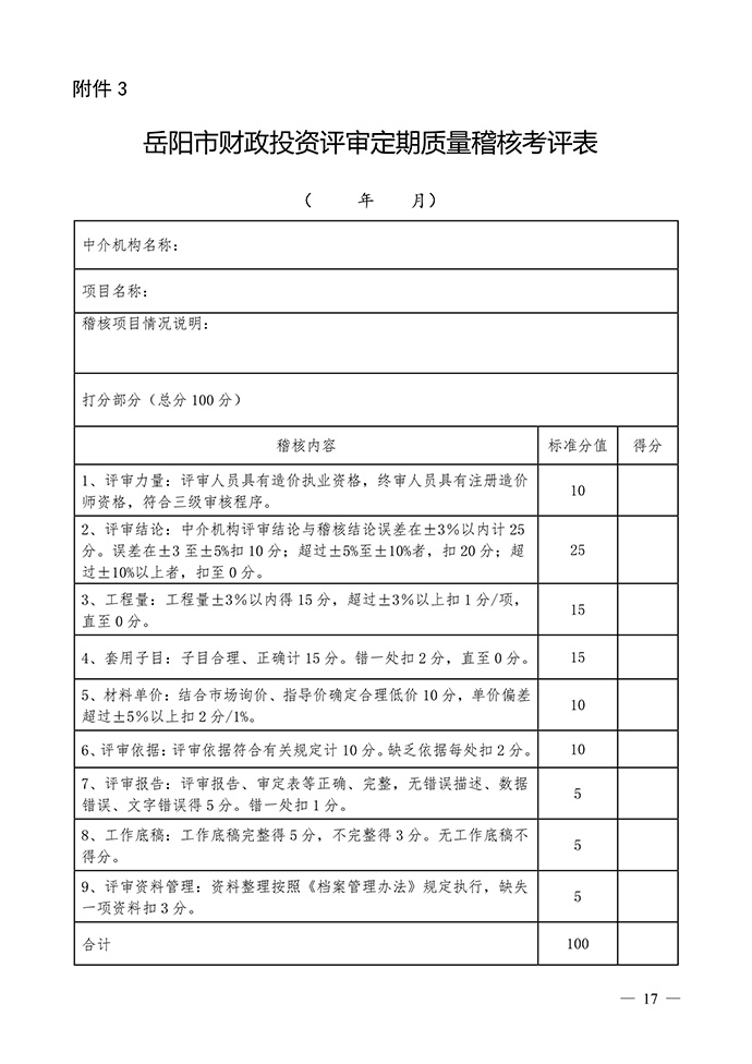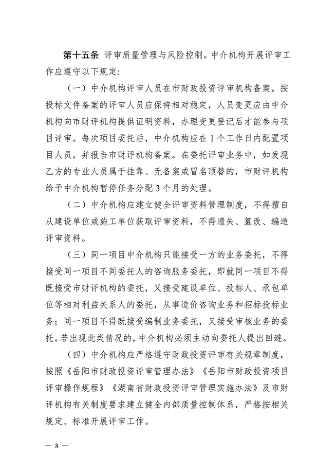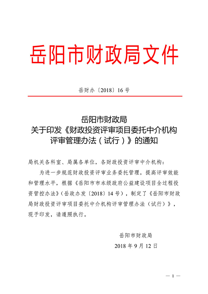 岳陽市財政局關(guān)于印發(fā)《財政投資評審項目委托中介機構(gòu)評審管理辦法(試行)》的通知
